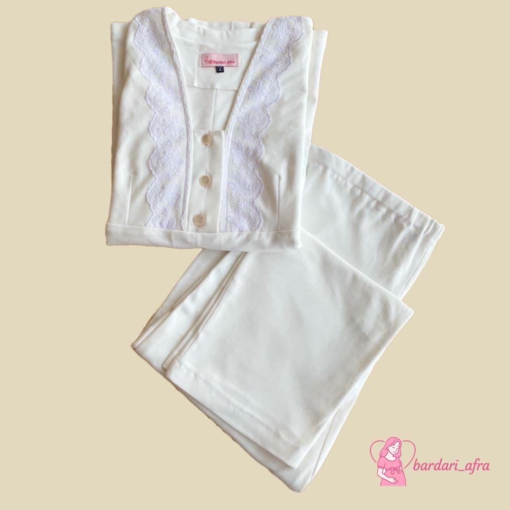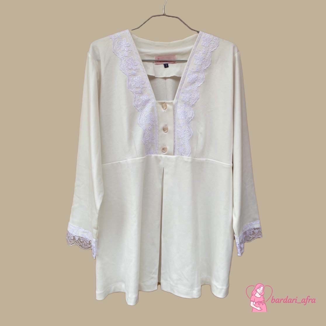 ست دو تکه شامل تونیک دانتلدار و شلوار کشی، مناسب بارداری و شیردهی