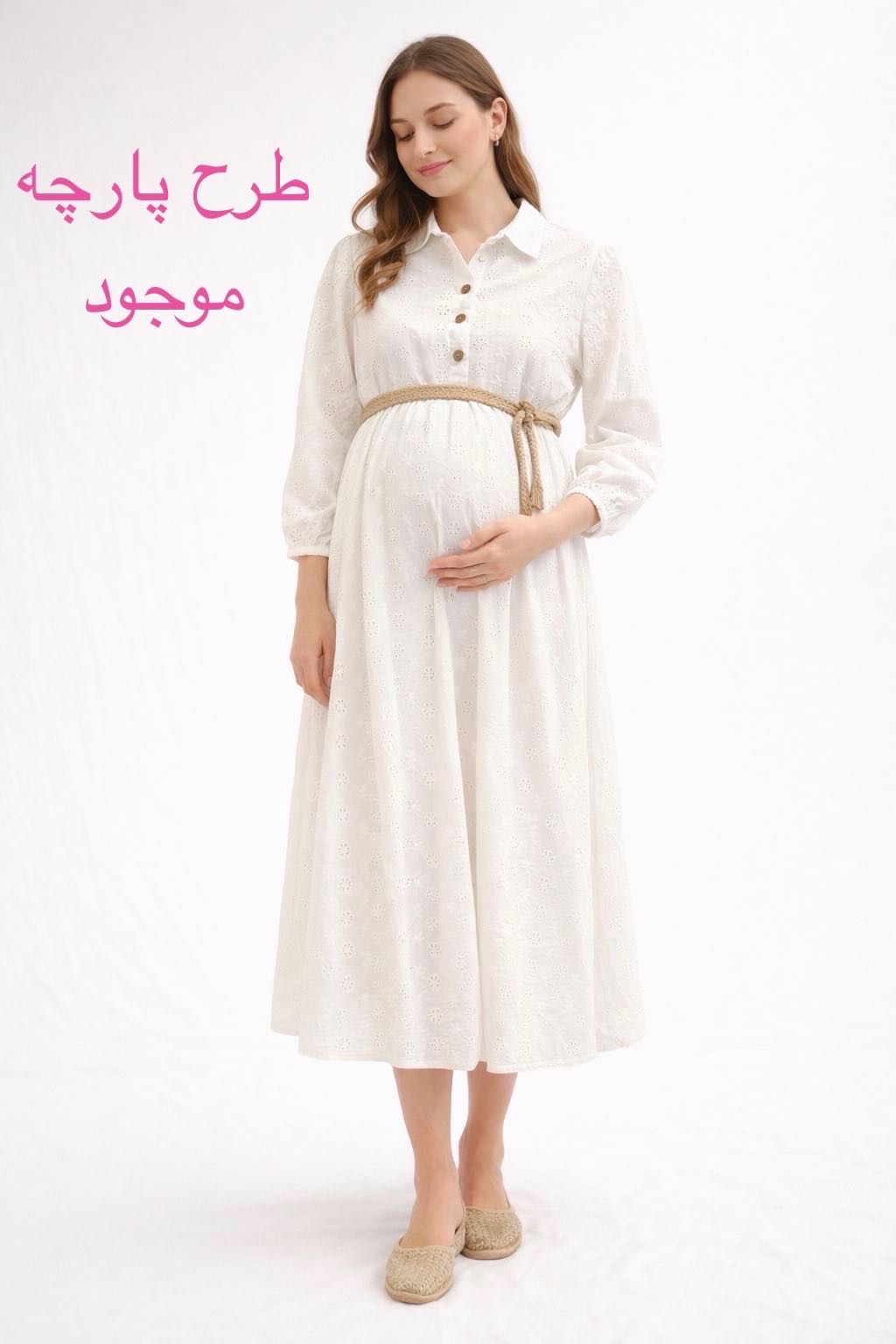 پیراهن بارداری شیک و پوشیده با تزیینات خامهدوزی ظریف